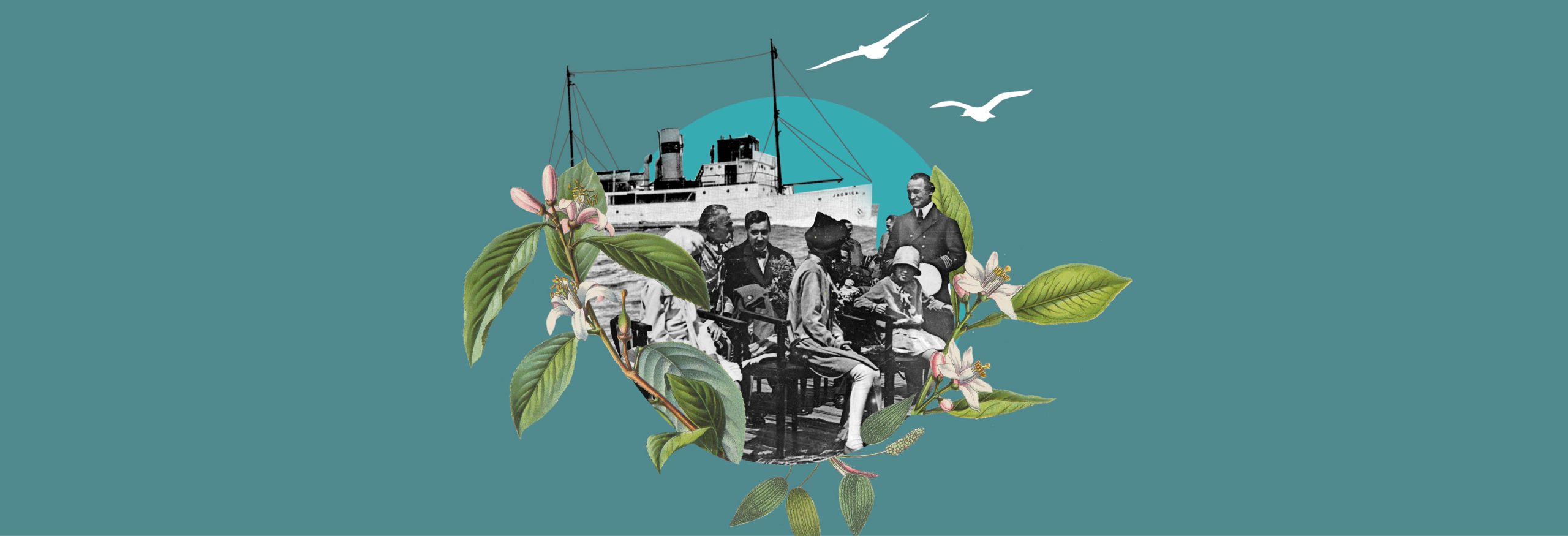 W grafice wykorzystano fotografię z okazji uroczystości poświęcenia statków pasażerskich „Wanda”, „Jadwiga”, „Hanka” z udziałem Józefa Piłsudskiego i jego córek (Gdynia, 1928, źródło: Narodowe Archiwum Cyfrowe) oraz fotografię statku przybrzeżnego „SS Jadwiga” (Wikipedia).