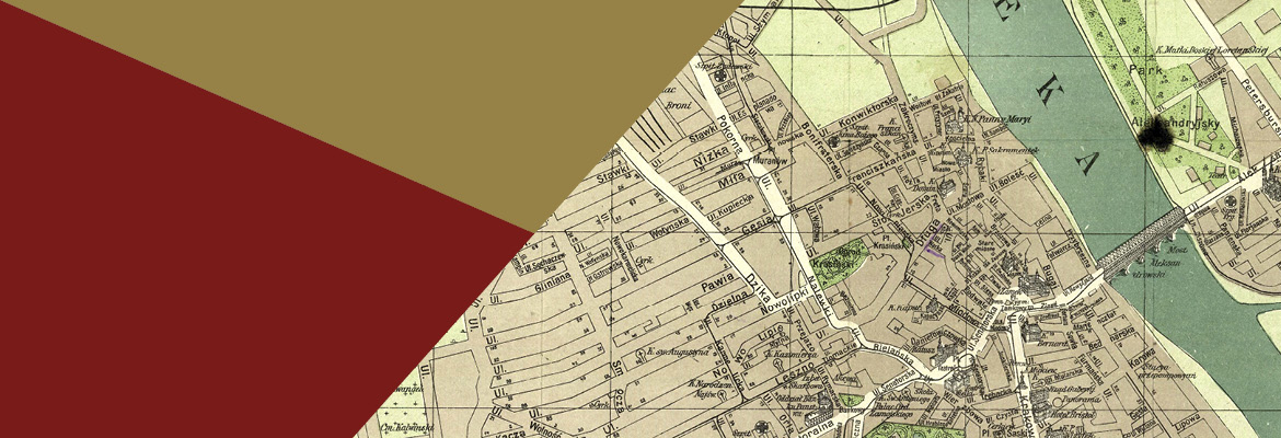 W grafice wykorzystano dawną, stylizowaną mapę Warszawy.